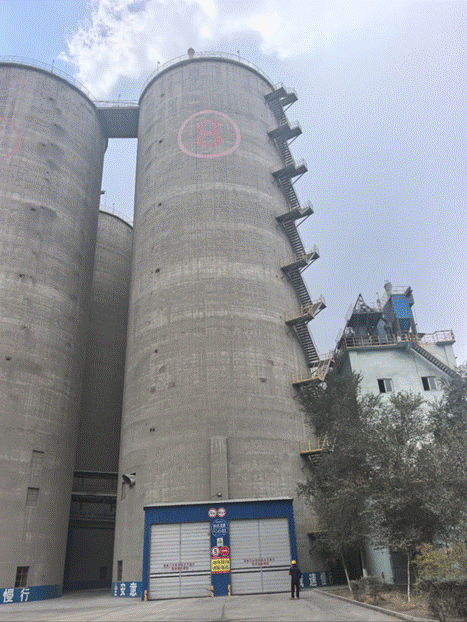 On-site footage of cement silos